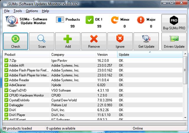 Contrairement aux fonctionnalités de mise à jour automatique intégrées, après avoir scanné votre disque fixe, SUMo vous indique si des MAJ (Mises A Jour) sont disponibles avant que vous n'ayez besoin d'utiliser votre logiciel.